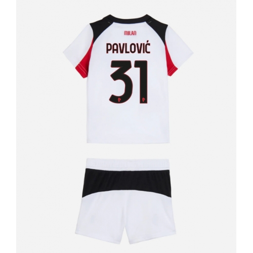 Billige Fotballdrakt AC Milan Strahinja Pavlovic #31 Replika Bortedraktsett Barn 2025-26 Kortermet (med bukser)